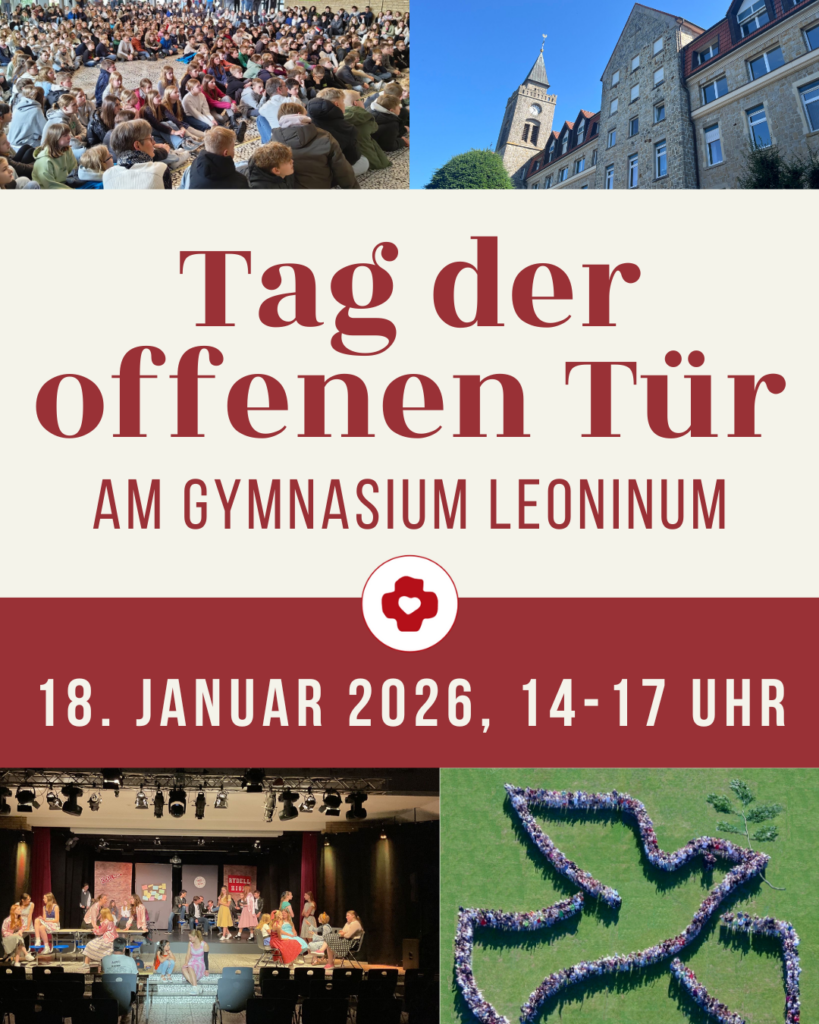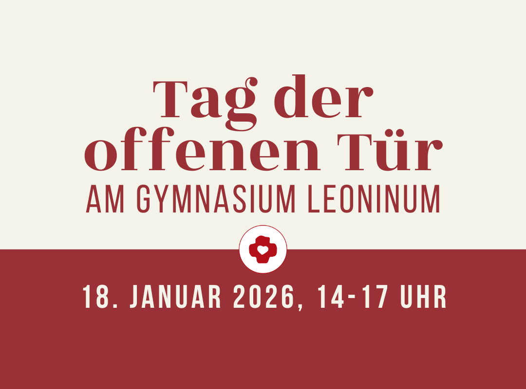 Alle Schülerinnen und Schüler im vierten Jahrgang und alle Eltern, die mit dem Gedanken spielen, ihr Kind für das Schuljahr 2026/27 am Gymnasium Leoninum für die Klasse 5 anzumelden, laden wir herzlich dazu ein, unsere Schule am 18. Januar 2026 am Tag der offenen Tür kennenzulernen.