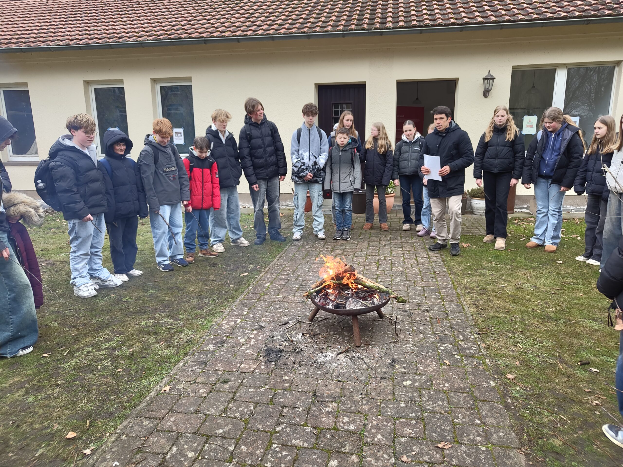 🔥 Café: Anschließend wurde dieser Stock verbrannt – als Zeichen des Loslassens und des Neuanfangs. In der gemeinsamen Aktion konnten die Schülerinnen und Schüler symbolisch ablegen, was sie belastet, und Raum schaffen für neue Gedanken und Perspektiven.