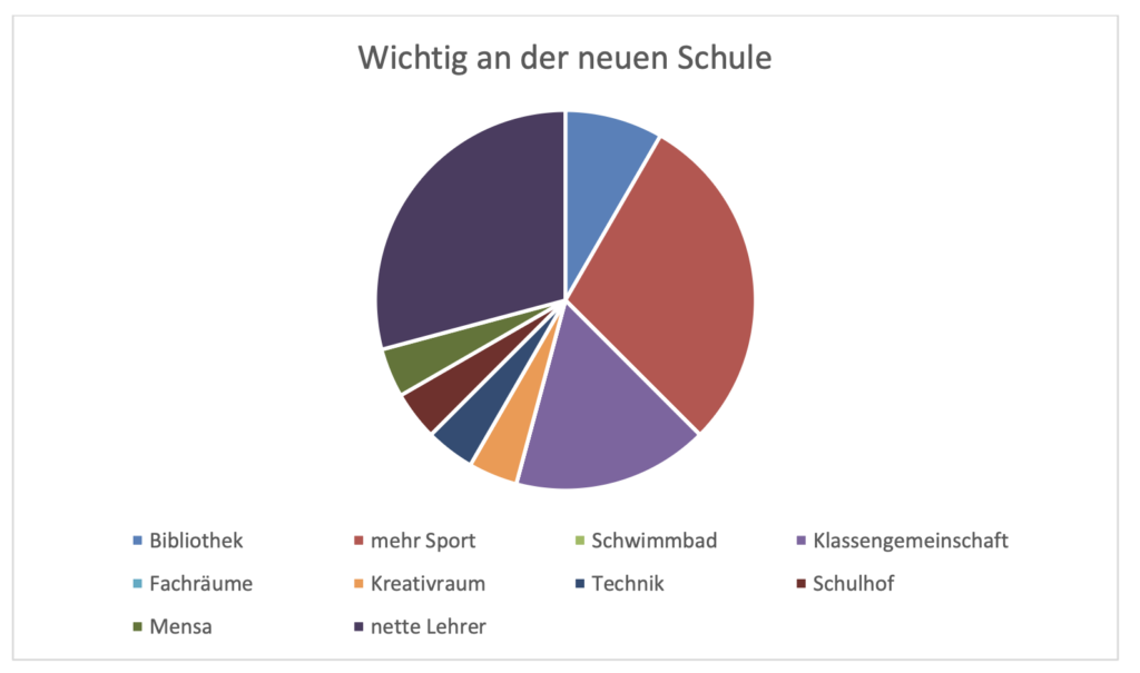Und wir haben bereits jetzt gute Nachrichten: Eure Wünsche, die ihr in der Wahlurne abgegeben habt, werden erfüllt! Die Ergebnisse zeigen, was euch an eurer neuen Schule besonders wichtig ist – eine umfangreiche Bibliothek, gut ausgestattete Fach- und Kreativräume, aber auch eine tolle Klassengemeinschaft und nette Lehrer. Mit diesen Wünschen seid ihr bei uns genau richtig! Unser Ziel ist eine Schule, in der ihr euch wohlfühlt, gerne lernt und als Klassengemeinschaft zusammenwachst.