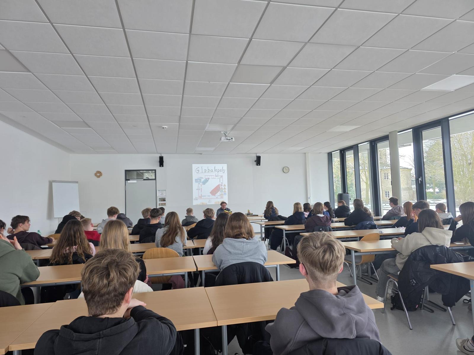 Am 27.01. hat der Autor und Journalist Wolfgang Korn für die Schüler:innen des Jahrgang 10 aus seinem Roman “Globalopoly” gelesen. Darin entwickeln vier Jugendliche ein Risikospiel nach bekanntem Vorbild, das verdeutlicht, wie in unserer globalisierten Welt aus allem Kapital geschlagen wird – zu Lasten der Menschheit und Umwelt – und finden sich dann im Visier jener Menschen, die für Geld wohl alles tun würden. Die Lesung hat den Schüler:innen auch spannende Einblicke in das Leben eines Autoren und Reporters ermöglicht.