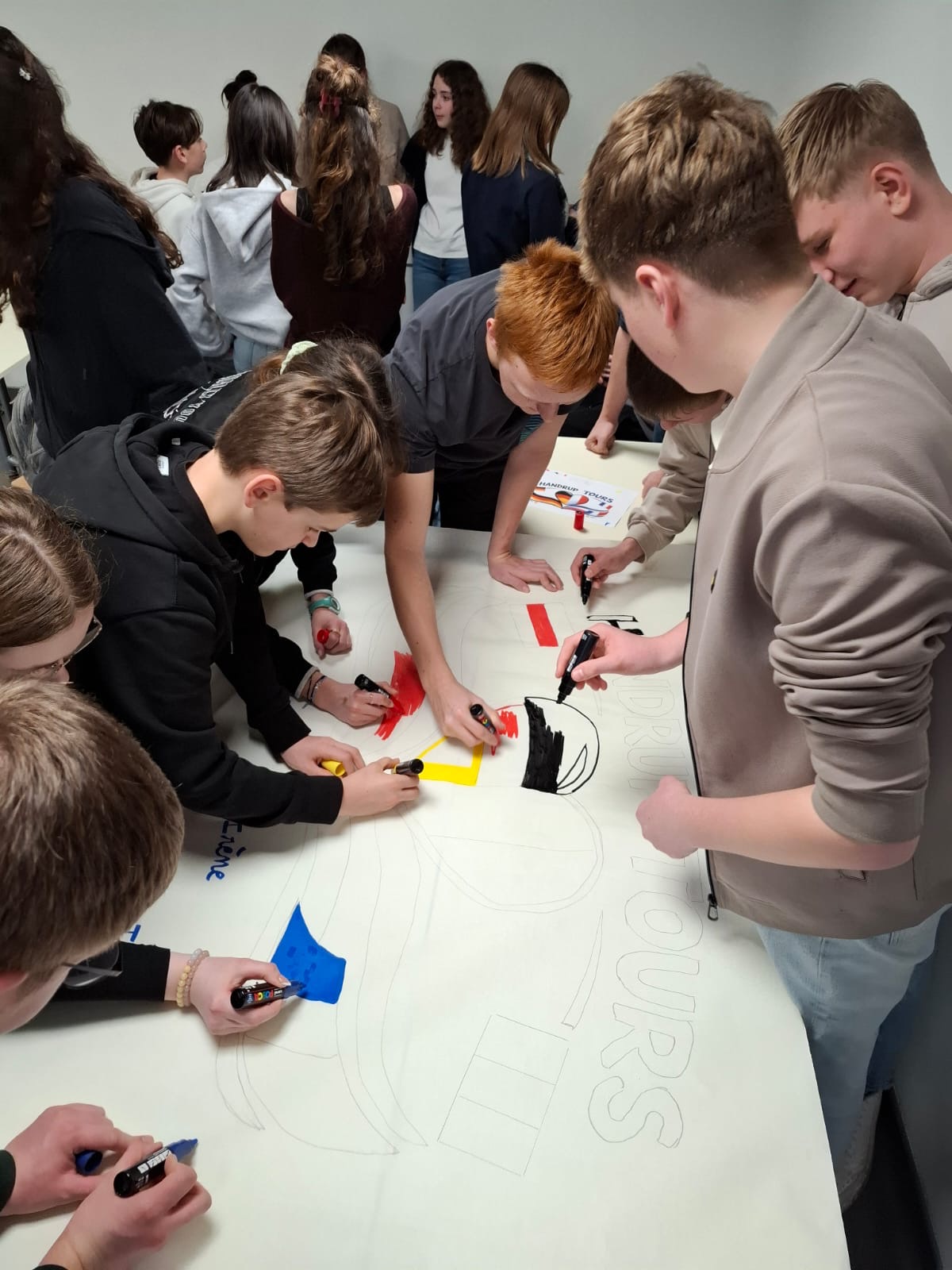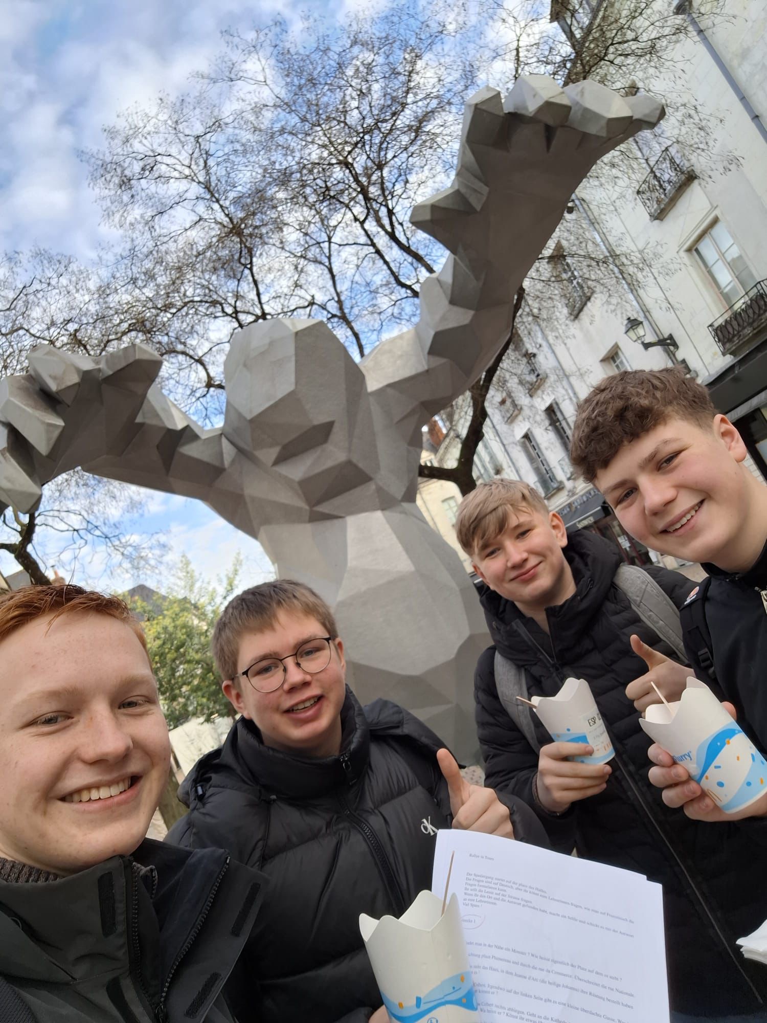 Am Samstag, dem 28. Februar, sind wir, 15 Schüler der Französischkurse des Jahrgangs 10, begleitet von Frau Grüter und Frau Wenning, zusammen mit dem Busunternehmen Krümpelmann nach Tours gereist. Dort verbrachten wir eine Woche gemeinsam mit unseren Austauschschülern, welche uns zuvor im Dezember in Deutschland besucht hatten. Vor Ort gewannen wir einen näheren Einblick in den französischen Schulalltag, erkundeten die Stadt Tours spielerisch und unternahmen diverse Ausflüge, wie z. B. eine Street Art-Tour sowie einen Besuch des Hauses des französischen Dichters Pierre de Ronsard. Neben den kulturellen Programmpunkten kam bei uns auch der Spaß nicht zu kurz. Unser gemeinsames Bowlen sorgte für gute Stimmung und stärkte das Gemeinschaftsgefühl in der Gruppe. Den Abschluss der Austauschwoche bildete ein festlicher Abend in der Schule, der die Woche in fröhlicher Atmosphäre abrundete, bevor wir dann am Morgen des 06. März unsere Rückreise antraten.