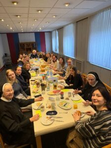 Der Samstag begann mit einem Morgengebet mit Schwester Hanna. Neben den spirituellen Impulsen bot der Tag auch Raum für Gemeinschaft und Bewegung: Die Schülerinnen und Schüler hatten die Möglichkeit, gemeinsam Sport zu treiben oder das Schwimmbad zu besuchen. Auch die gemeinsamen Mahlzeiten mit den Ordensmitgliedern boten Gelegenheit zum Austausch und zu Gesprächen über Glauben, Leben und Zukunftsperspektiven.