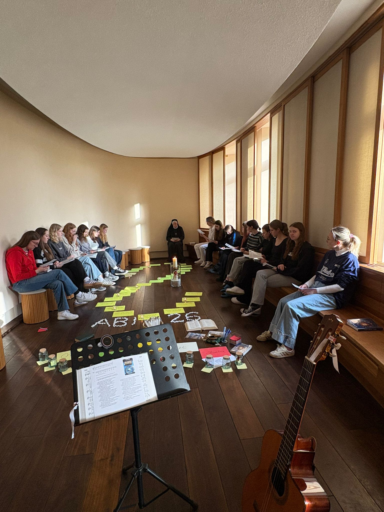 Gleichzeitig diente das Wochenende auch der Vorbereitung auf das bevorstehende Abitur. In der ruhigen Atmosphäre des Klosters nutzten viele Schülerinnen und Schüler die Zeit, um gemeinsam zu lernen, Inhalte zu wiederholen und sich gegenseitig zu unterstützen. Die besondere Umgebung fernab des Schulalltags half vielen dabei, sich konzentriert auf die kommenden Prüfungen vorzubereiten.