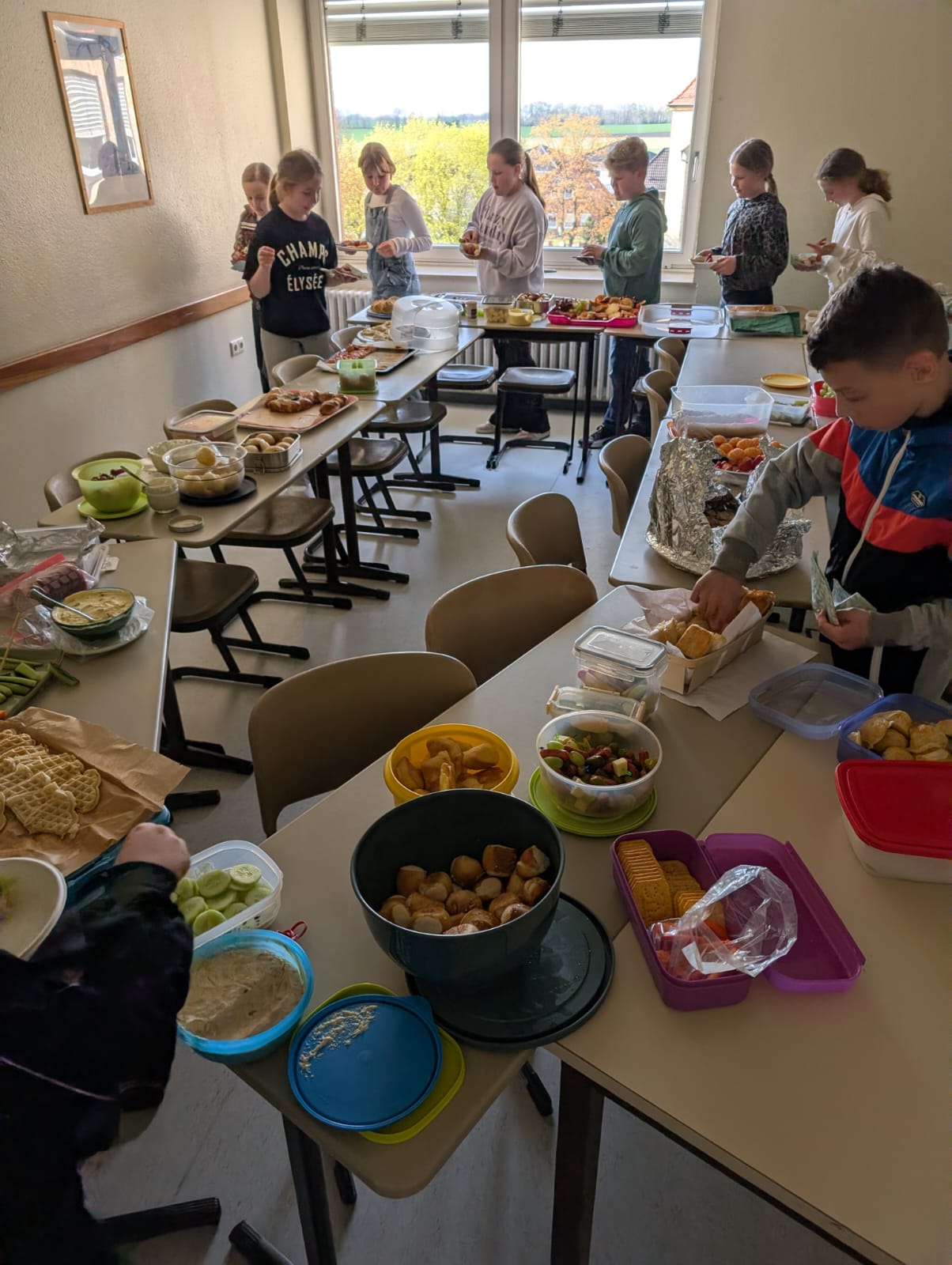 Nachdem die erste Action überstanden war, wartete bereits das selbst organisiertes Buffet, das keine Wünsche offen ließ. Frisch gestärkt und voller Tatendrang meisterten die Klassen das berüchtigte Bibliotheks-Quiz.