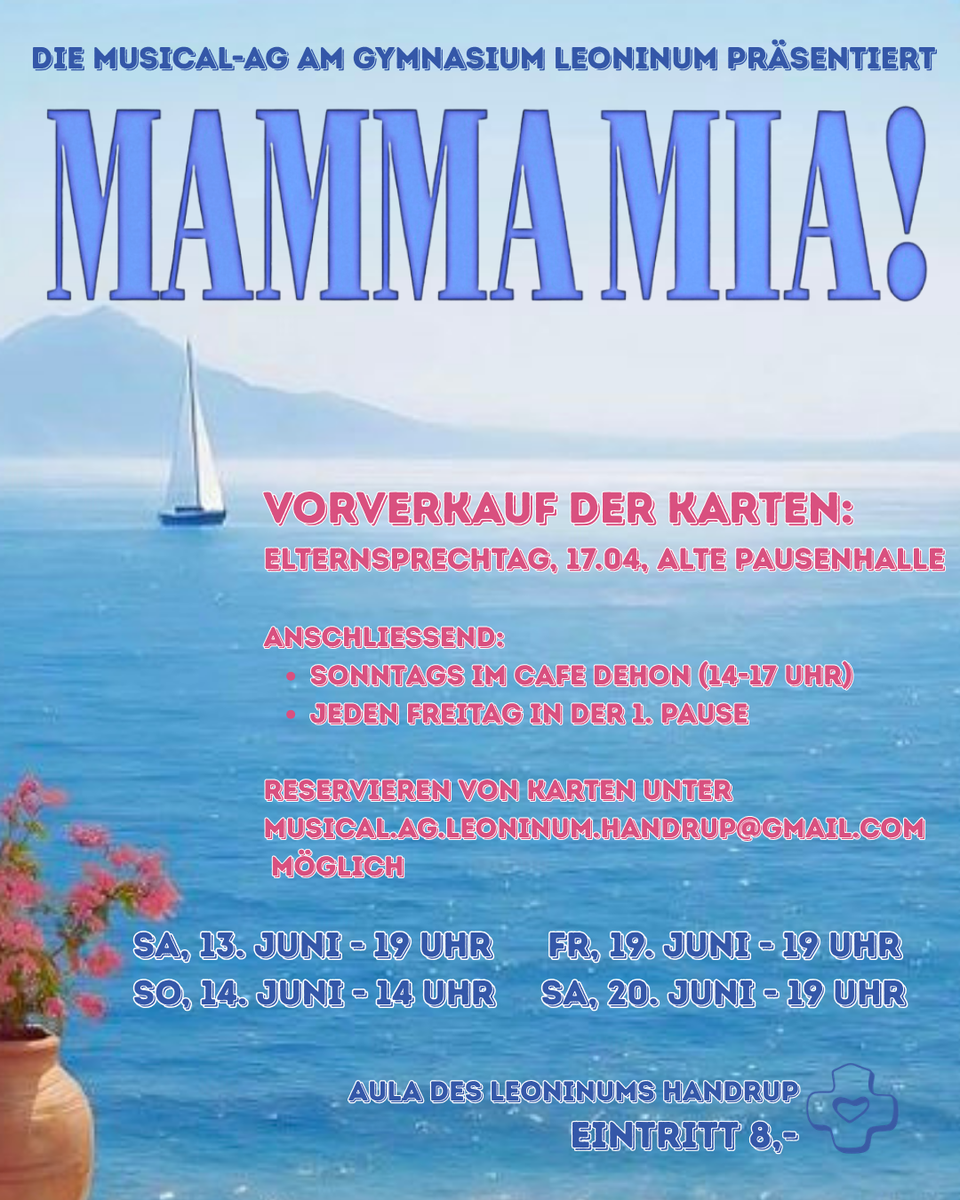- Reservierung über musical.ag.leoninum.handrup [at] gmail.com, Abholung und Bezahlung am Konzertabend