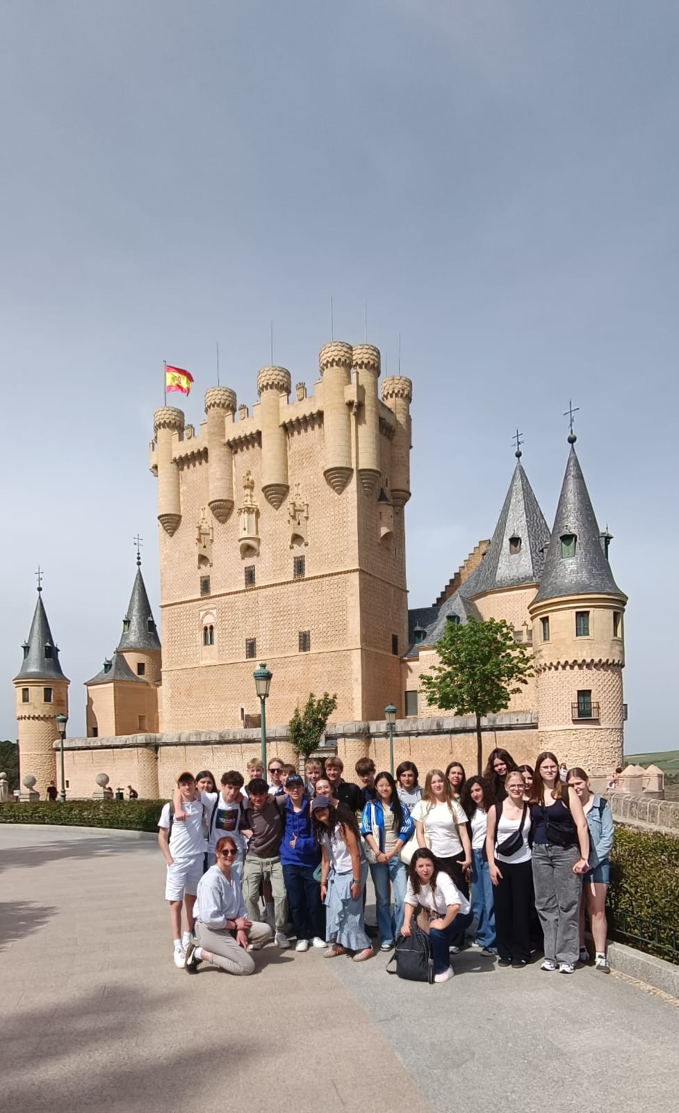 Kulturelle Höhepunkte durften nicht fehlen: Im Museo Reina Sofía setzten sich die Schülerinnen und Schüler mit bedeutenden Werken der Moderne auseinander und vertieften ihr Verständnis für Kunst als Spiegel gesellschaftlicher Entwicklungen. Ein Ausflug nach Segovia erweiterte den Blick: Römisches Aquädukt, mittelalterliche Gassen und der Alcázar – Geschichte zum Anfassen in einer beeindruckenden Kulisse.