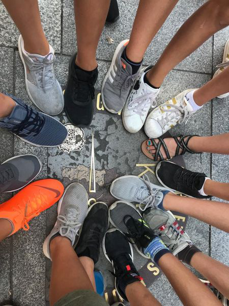 Mich erinnert das Bild oben daran, was Gott uns zutraut: Es ist auf der schon erwähnten Puerta del Sol entstanden und zeigt die Füße einer Klasse auf dem sogenannten ‚Nullkilometerpunkt‘ von Spanien. Die Schülerinnen und Schüler waren damals in der fünften Klasse, ganz neu an unserer Schule und schon auf dem Weg in unbekannte Welten. Sie mussten sich großen Herausforderungen stellen, haben sie zusammen gemeistert und ihre Füße miteinander auf weiten Raum gestellt. Ein bisschen, wie die Mannschaft des Raumschiffs Enterprise …