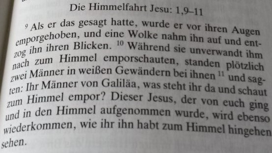 Wir unterbrechen unseren „Corona-Schulbetrieb“ für ein verlängertes Wochenende über Christi Himmelfahrt. 40 Tage nach Ostern bestätigt sich noch einmal, was wir an Ostern gefeiert haben: Jesus lebt und ist bei Gott! Aber nicht so, dass er für uns nicht erreichbar wäre. Ganz am Ende des Matthäusevangeliums sagt er seinen Jüngern: „Seid gewiss: Ich bin bei euch alle Tage bis zum Ende der Welt.“ (Mt 28,20)