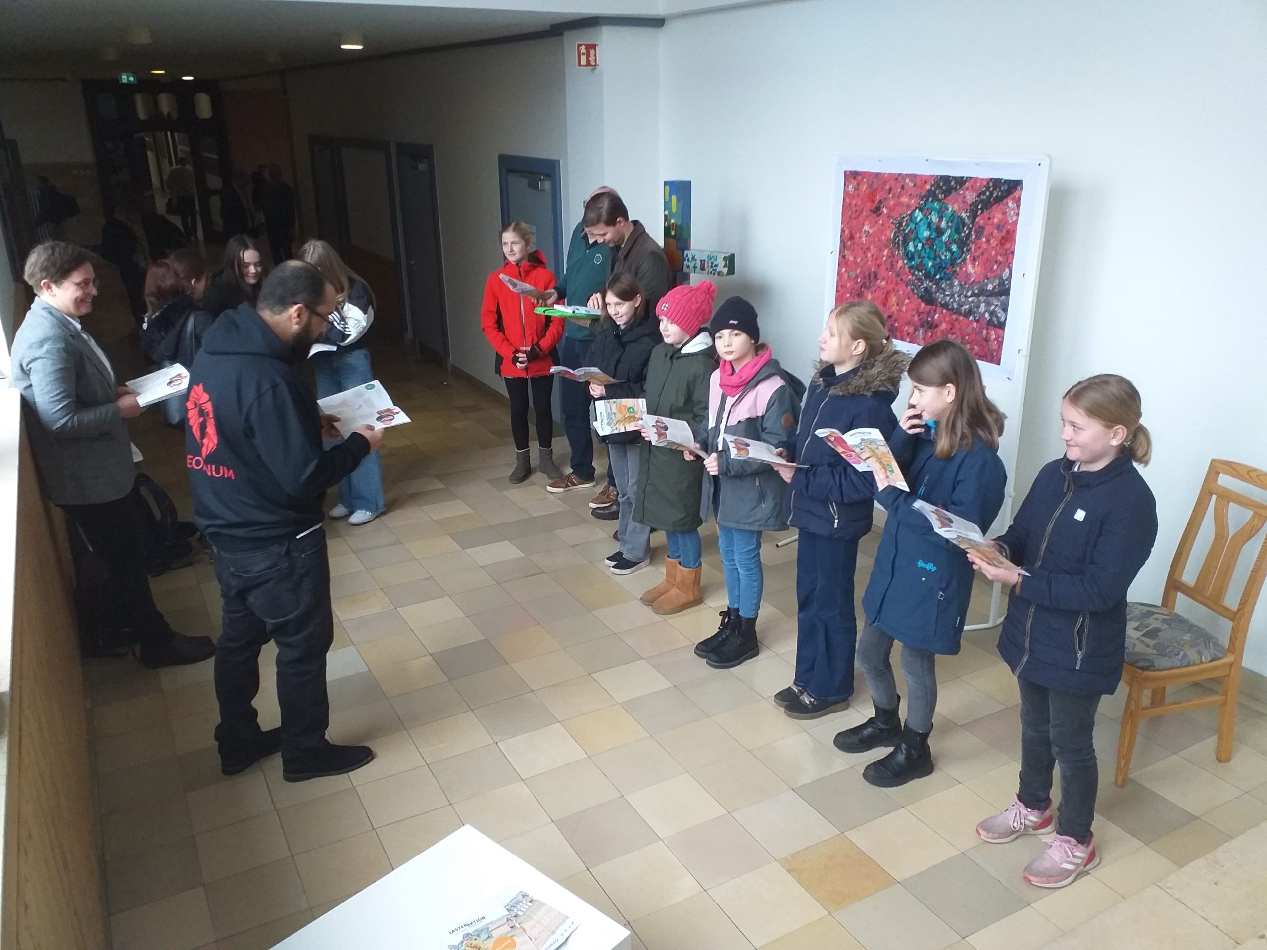 In diesem Jahr konnten wir erstmalig fünf Studenten mit ihrem Kleinbus voller Experimente bei uns begrüßen. Vom 27.02. – 01.03. hatten insgesamt 20 Klassen und Kurse die Möglichkeit an Workshops zum Thema Magnetismus, Optik oder Informatik teilzunehmen.
