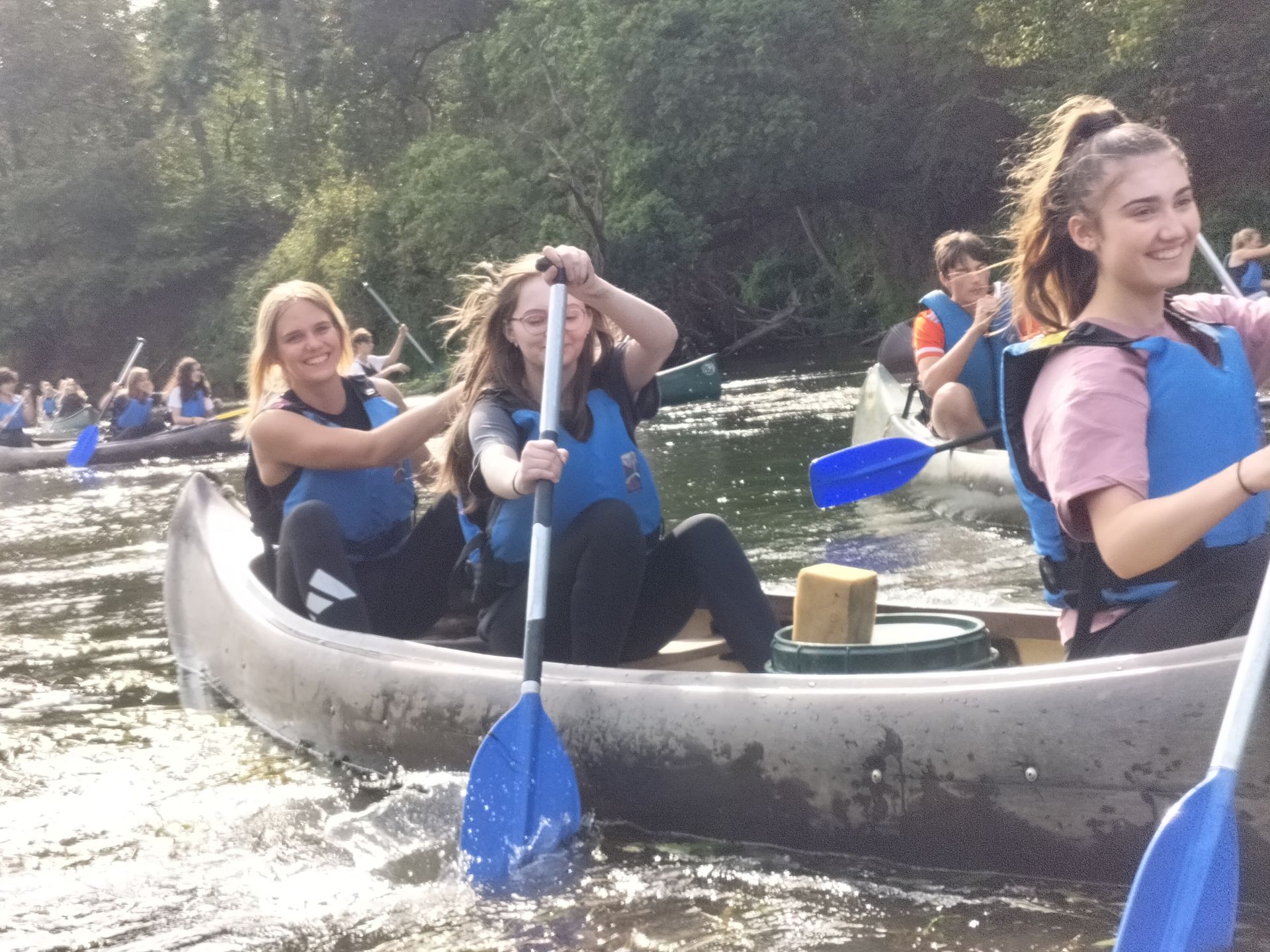 “It was a beautiful day in Lingen. Kanufahren went well. The paddles scooped the water and threw it in the Air as if they were cute little flocks of snow that get carried by the wind to far away places where The polar Bears roam. Then the droplets of water splash onto the bright canal in which we are trying to manage the boats. One by one, splash by splash, the boats kept going forward in search for the next destination. Sometimes boats cross paths and cause small collisions. Wet is the unlucky person that was in the wrong place at the wrong time. The place and time where the paddle hits the water in a certain way, so that water goes flying onto you. The waves caused by the collision flow forward and slowly mix with the by us disturbed canal.
