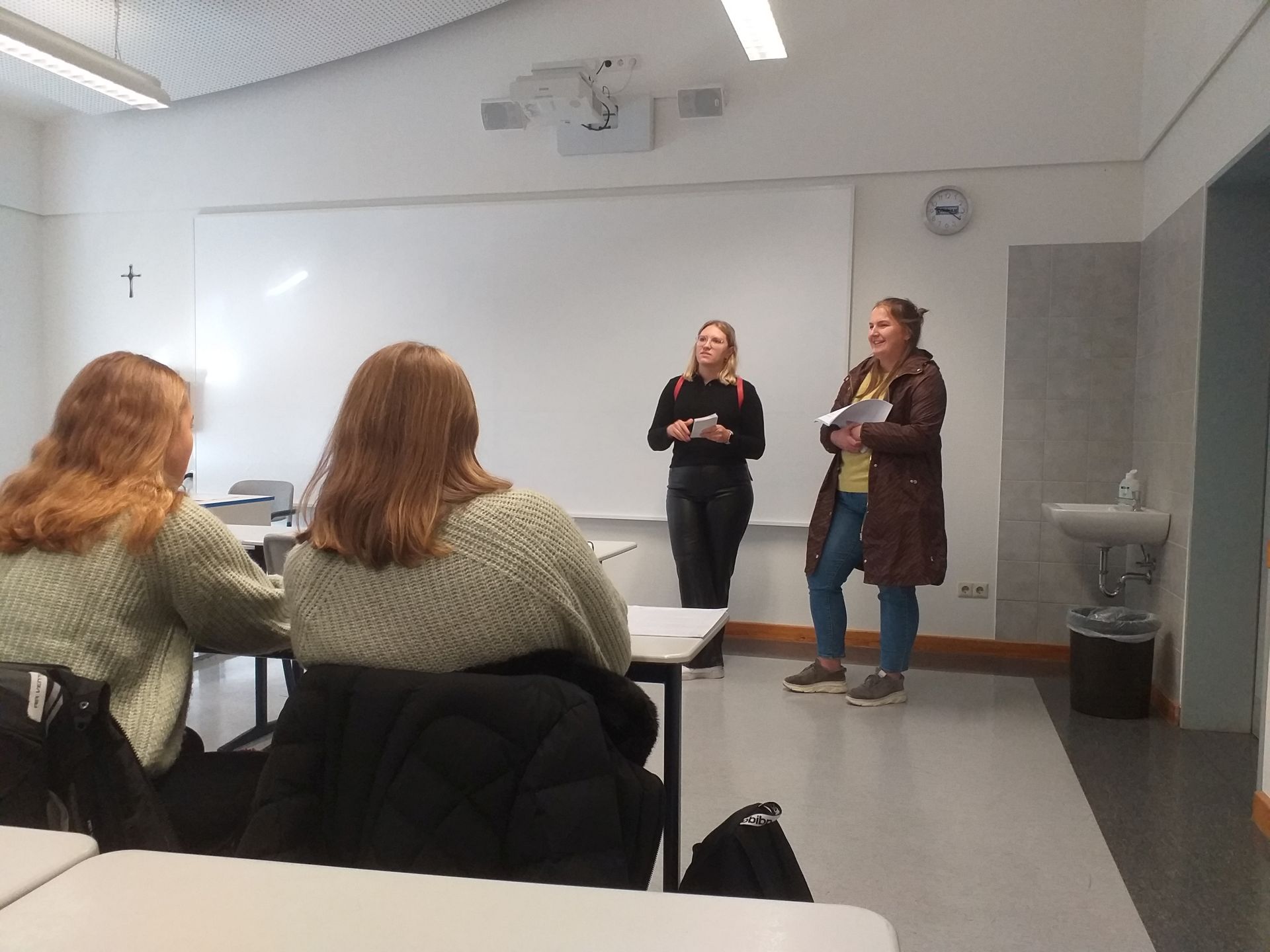 Deshalb hat das Gymnasium Leoninum heute gerne den Jugendpflegerinnen der Samtgemeinde Fürstenau, Nadja Rudi und Kristina Heidemann, die Gelegenheit gegeben, Werbung für die Neuwahlen des Jugendparlaments in der Samtgemeinde Fürstenau zu machen. In den Fürstenauer Klassen und in Oberstufen-Kursen gaben Frau Rudi und Frau Heidemann Informationen zur Arbeit des Jugendparlaments (Stimmrecht in zwei Samtgemeinde-Ausschüssen, eigenes Budget) und riefen dazu auf, sich als KandidatInnen zur Verfügung zu stellen und vom Wahlrecht Gebrauch zu machen. Die Wahl wird Anfang November stattfinden mit einem eigenen Wahllokal am Gymnasium Leoninum!