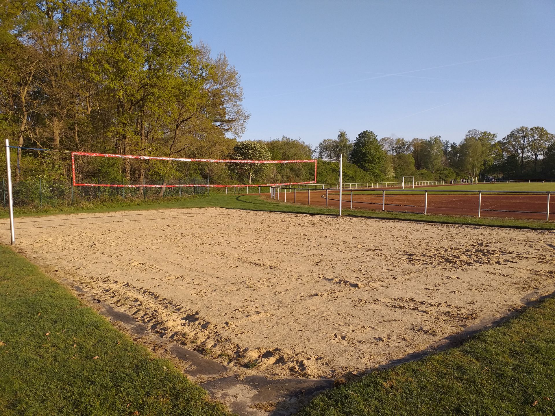Die beiden Handruper Beach-Volleyballfelder auf dem neuen Sportplatz feiern in diesem Jahr ihr 25-jähriges Jubiläum! Das belegt eine Plakette an einem der Netzpfosten. Von den Hausmeistern und dem Neigungsfach von Frau Kopka wurden die beiden Plätze jetzt nach der Winterpause sauber und wieder “spielfähig” gemacht.