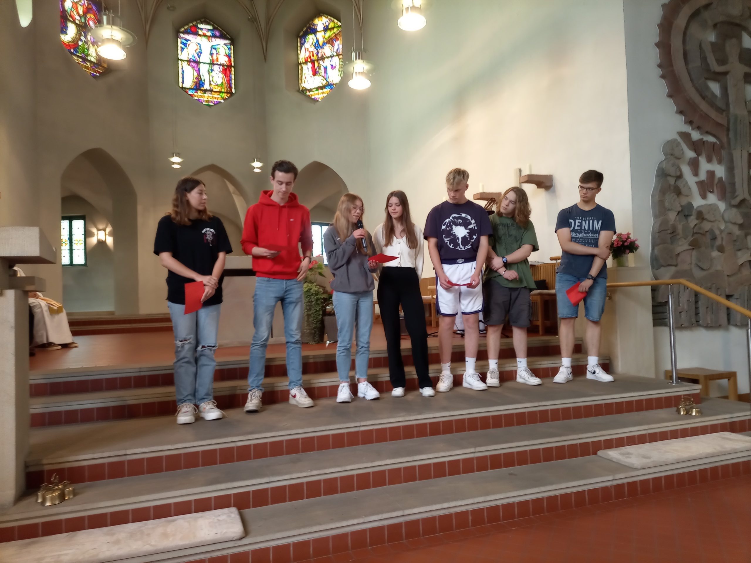 Am heutigen Buß- und Bettag fanden in der Handruper Klosterkirche Gottesdienste für die einzelnen Jahrgangsstufen des Gymnasiums Leoninum statt. Angemessen für die jeweiligen Altersstufen ging es z. B. für den Jahrgang 8 auf der Grundlage der Geschichte vom verlorenen Sohn darum, dass wir (obwohl vielleicht manches dagegen sprechen mag) “trotzdem” von Gott geliebt und in ihm geborgen sind.