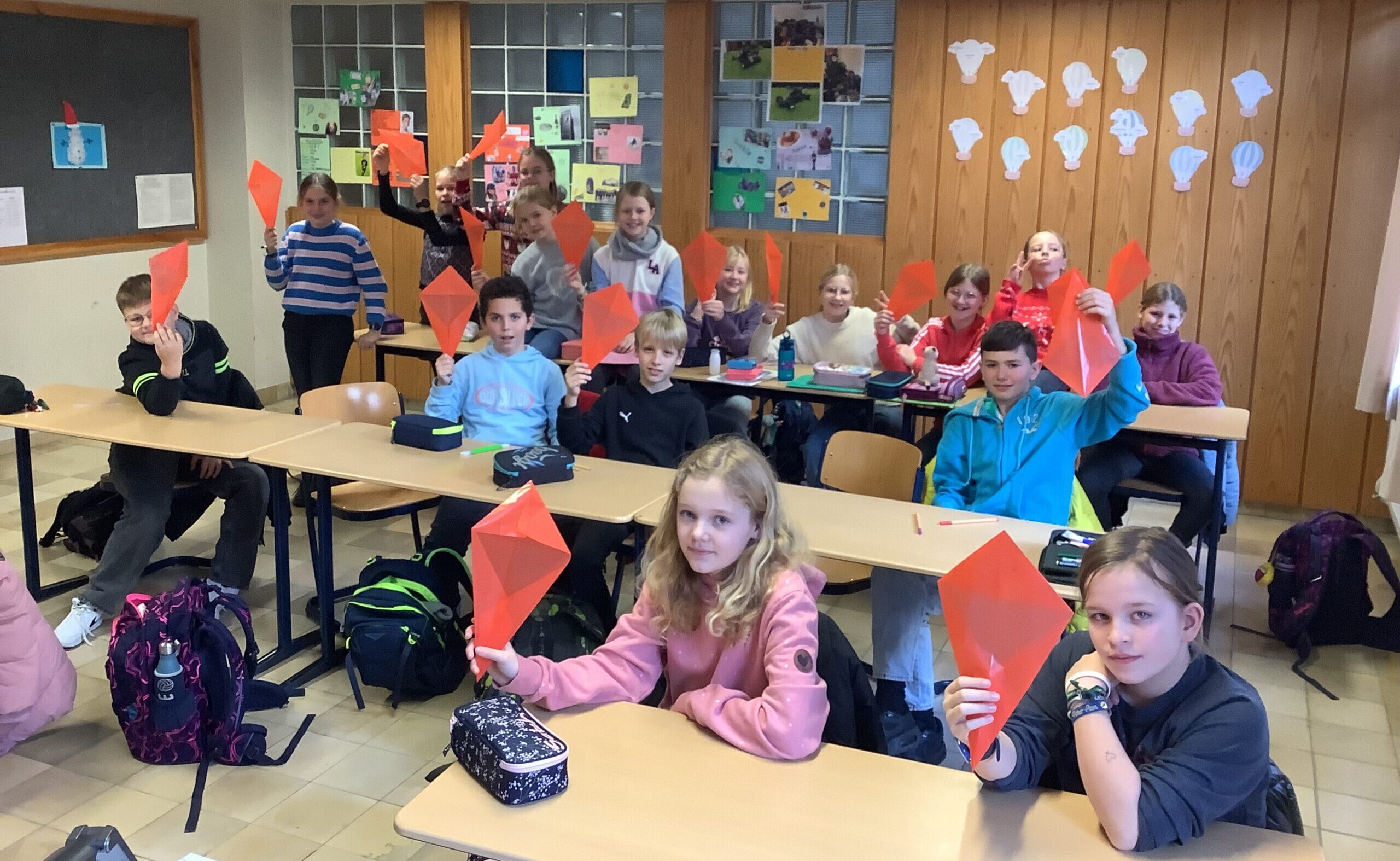Das Beitragsbild zeigt die Klasse 5e, die gemeinsam Sterne gebastelt hat.