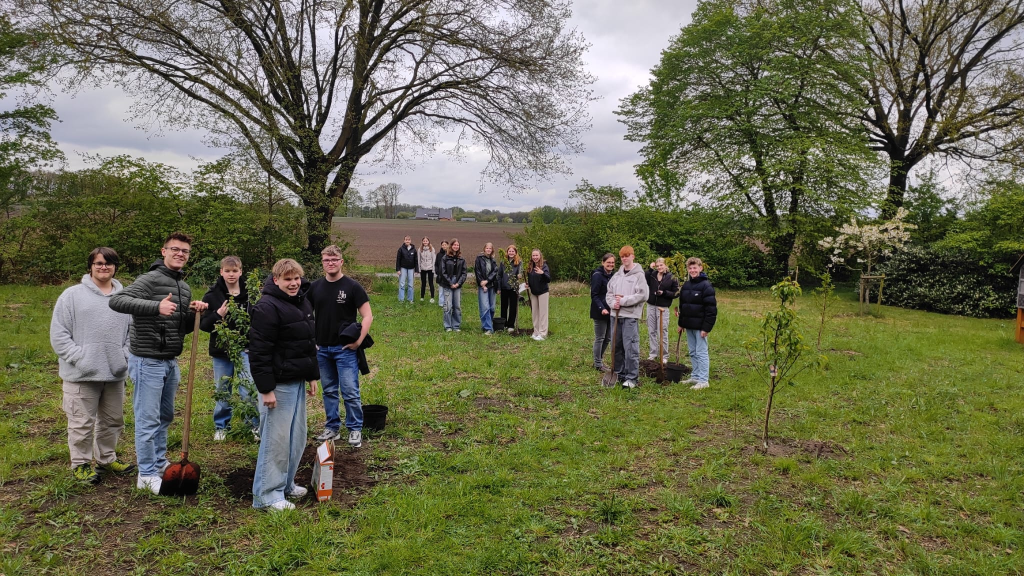 Am gestrigen Dienstag hat die Klasse 9c im katholischen Religionsunterricht gemeinsam mit Pater Paulo Obstbäume im Klostergarten gepflanzt. Im Anschluss wurde das zukünftige Klostercafé bestaunt, das sich aktuell zwar noch in Bau befindet, auf das sich die Schülerschaft jedoch bereits jetzt freut.