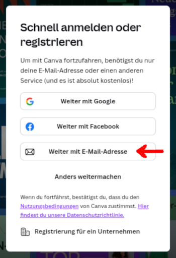 Es folgt eine Mini-Anleitung, wie man den eigenen Canva- Login aktivieren kann: